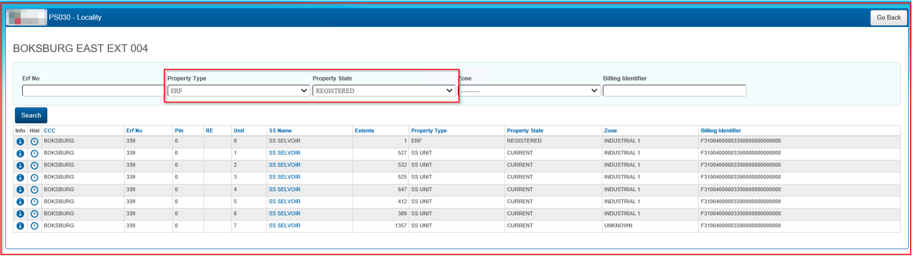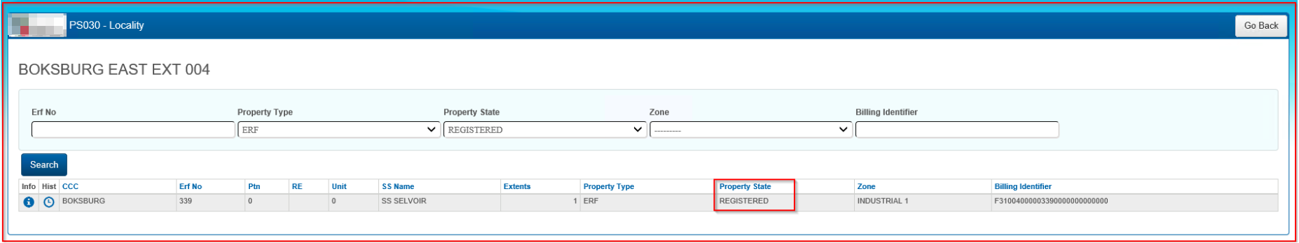 The results of this search will reveal all the Erven within that Locality that are Registered. Customize the filter to suit whatever criteria is being searched.